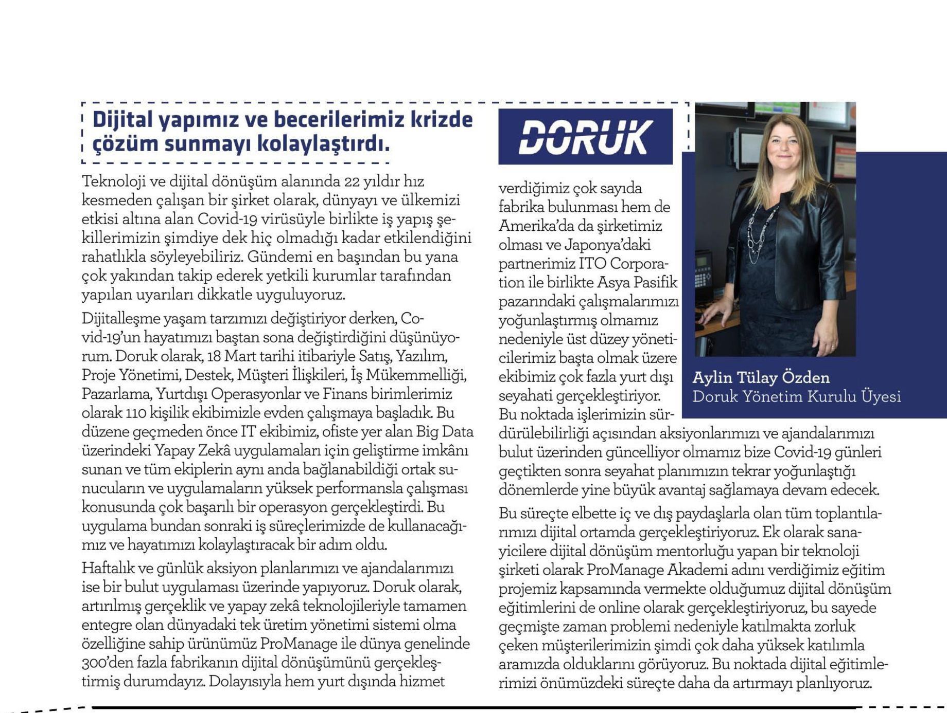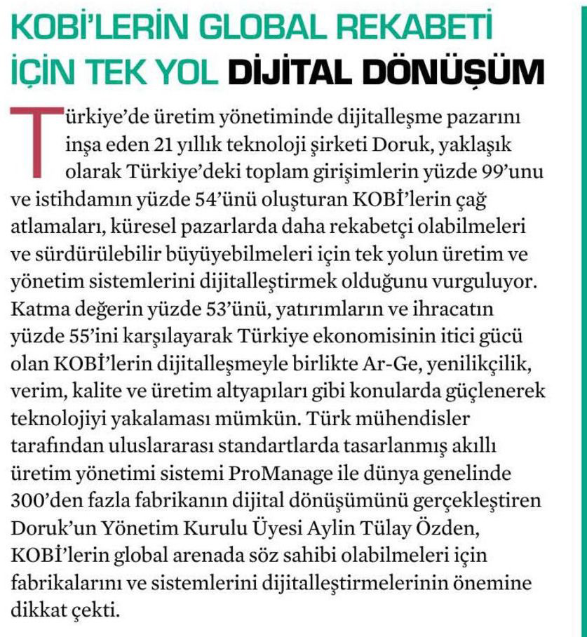 Subcon Turkey Dergisi: Doruk ile Fabrikalar Dijitalleşiyor ve Kısa Sürede Karlılıklarını Artırıyor.